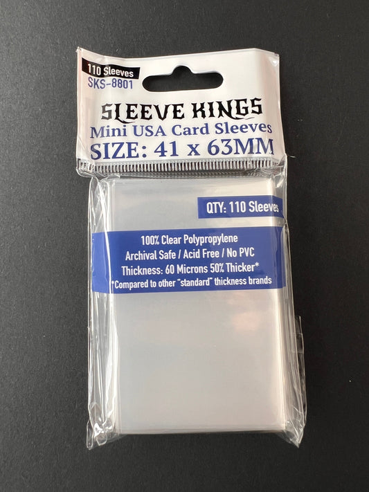 A Sleeve Kings, por sua vez, nossa caçulinha, foi criada em 2018 pelos mesmos proprietários da Mayday e confecciona exclusivamente sleeves nas medidas de 60 mícrons (110unids/pacote) e 100 mícrons de espessura (55unids/pacote).