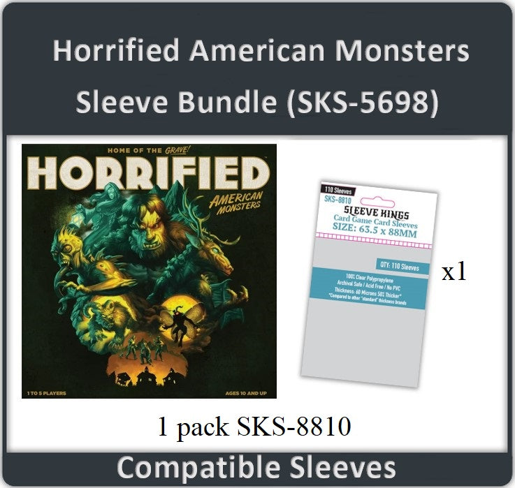This is all the sleeves for the game "Horrified: American Monsters" Compatible Sleeve Bundle (8810 X 1).