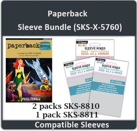 These are all the sleeves you need to sleeve everything for the game Paperback by Fowers Games. See images below for more details. We pulled the information for the number of cards and types for this bundle from THIS page.