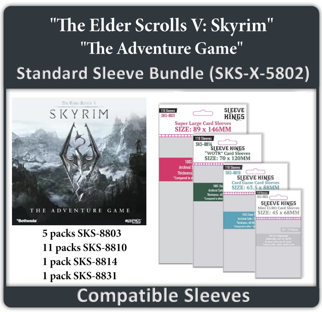 "The Elder Scrolls V: Skyrim – The Adventure Game" Compatible Card Sleeve Bundle (8803 x 5, 8810 x 11, 8814 x 1, 8831 x 1)