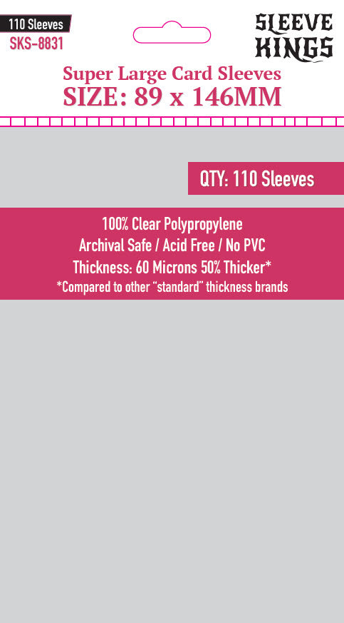 ** Note Game Titles and their intellectual property rights are © and TM of their respective rights holders, no challenge to these rights is expressed or implied. Compatibility claims only extend to the physical size of the cards in each respective game and no claim to endorsement or authorization by the respective rights holders is expressed or implied by Sleeve Kings or Imperial Publishing. Our products are compatible with the respective games only and all rights are reserved by the respective rights holders.