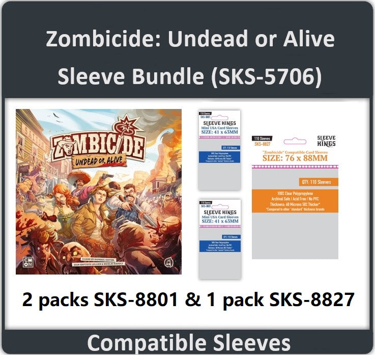 This is all the sleeves for the game Zombicide: Undead or Alive (8801 X 2 + 8827 X 1)